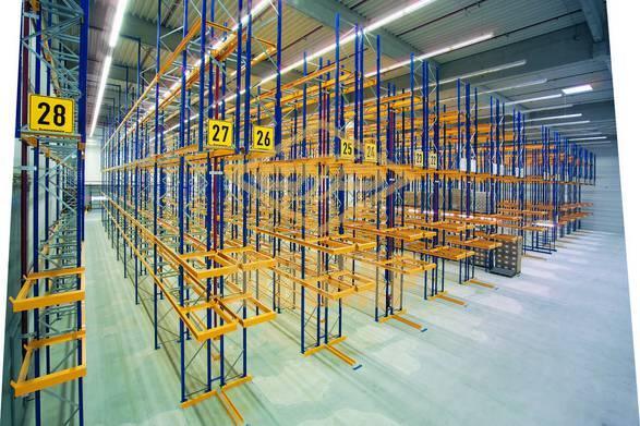 Многоместные фронтальные стеллажи при узкопроходной системе хранения